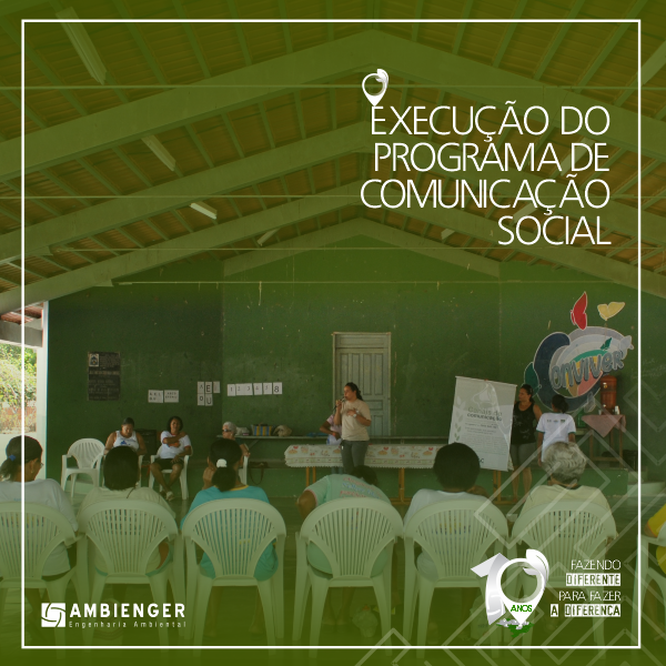 Neste sentido a Ambienger possui corpo técnico capacitado para conduzir a execução de programas de comunicação social voltado para qualquer atividade impactante, buscando prioriza a população diretamente afetada, informar e esclarecer sobre o empreendimento, além de constituir-se em veículo para receber sugestões, preocupações e queixas dos diversos setores interessados.