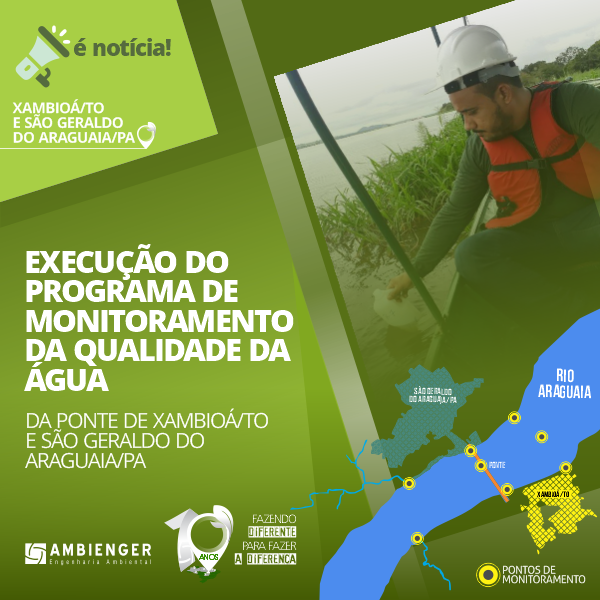 O Programa de Monitoramento da Qualidade da Água, chamado de PMQA, tem como objetivo monitorar a qualidade da água de corpos hídricos existentes na área de influência do projeto da Ponte entre Xambioá/TO e São Geraldo do Araguaia/PA, permitindo a adoção de medidas que assegurem a sua não degradação e a manutenção da sua qualidade.